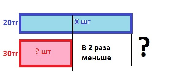Лена купила х тетрадей по 20 тг и заплатила 30х тг