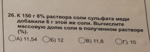 к 150 г 8 % раствора соли сульфата меди прибавили 6 Г этой же соли. Вычислите массовую долю соли в полученном растворе %