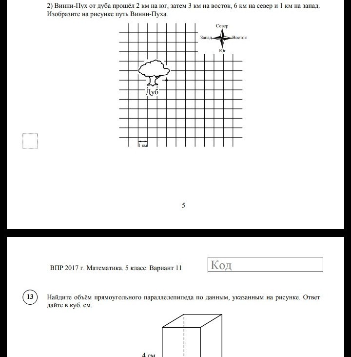 2) Винни-Пух от дуба прошёл 2 км на юг, затем 3 км на восток, 6 км на север и 1 км на запад.