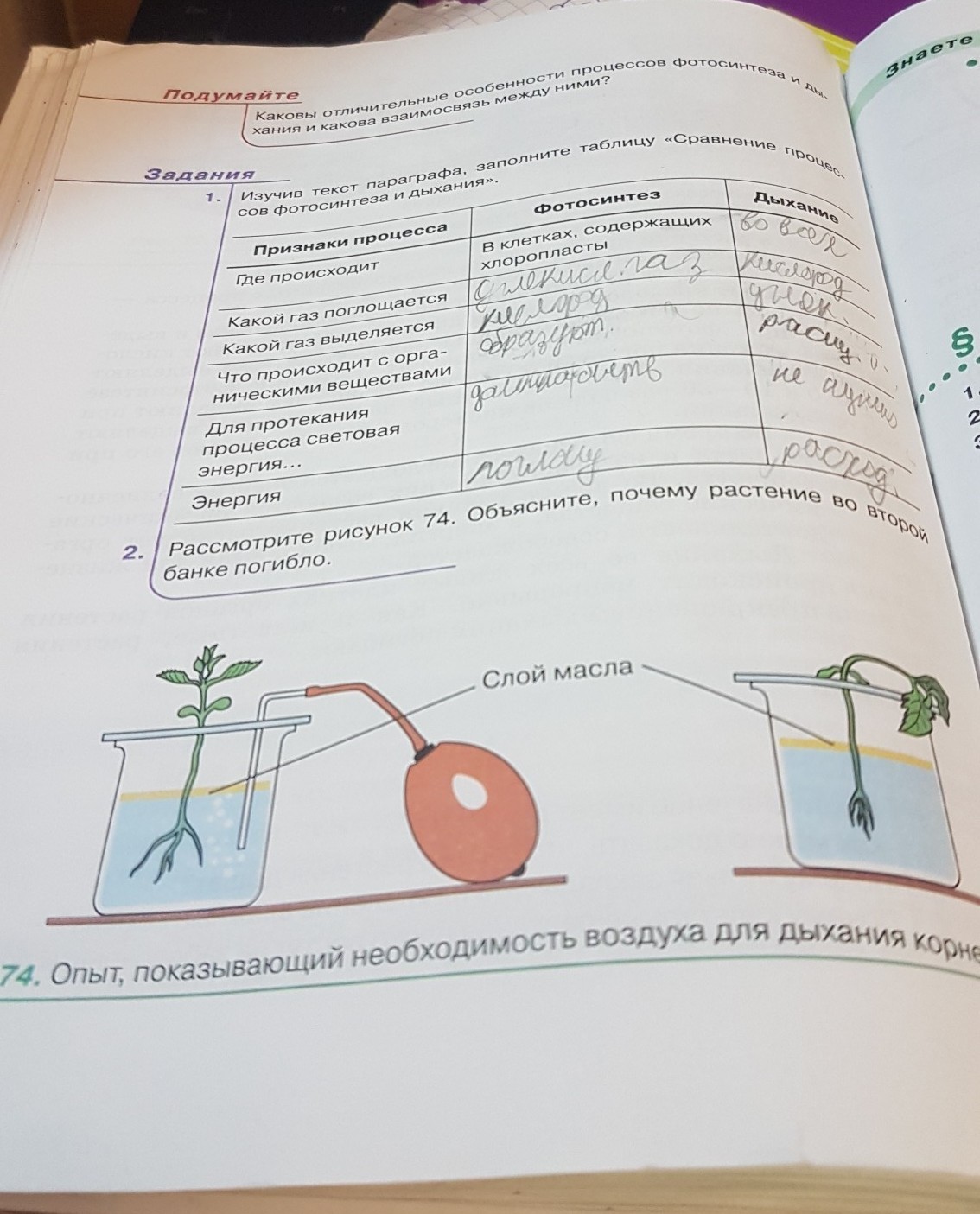 Растение во 2-ой банке погибло потому, что по воде разлил масло. В 1-ую банку поступал воздух и растение выжило, а во 2-ую нет и оно погибло.