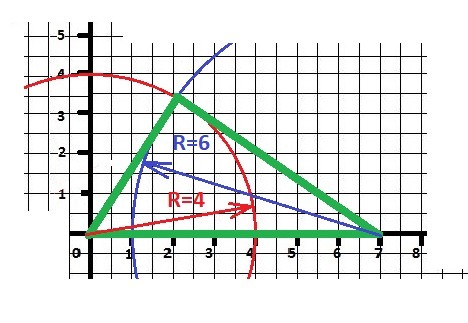 И циркулем делаем две дуги радиусом 4 см и 6 см до их пересечения.