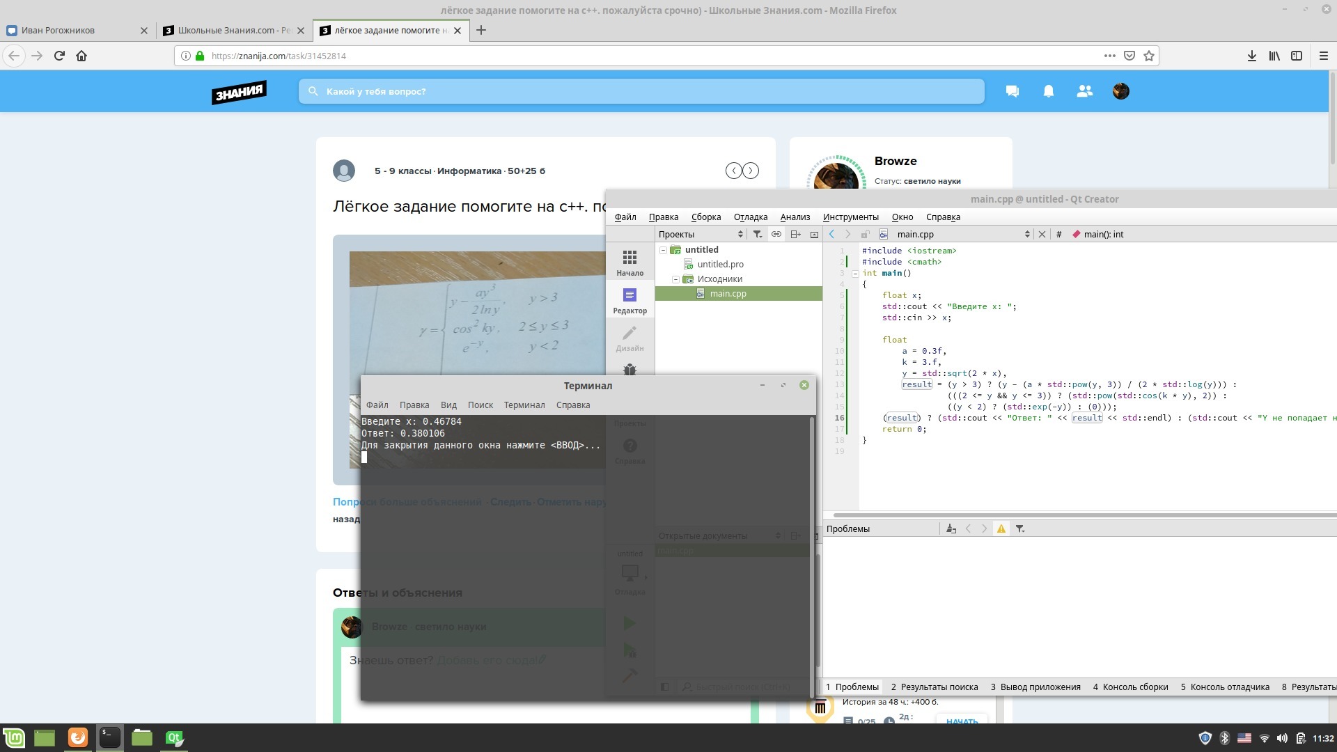 (result) ? (std::cout << "Ответ: " << result << std::endl) : (std::cout << "Y не попадает не под какие-либо выражения." << std::endl);
