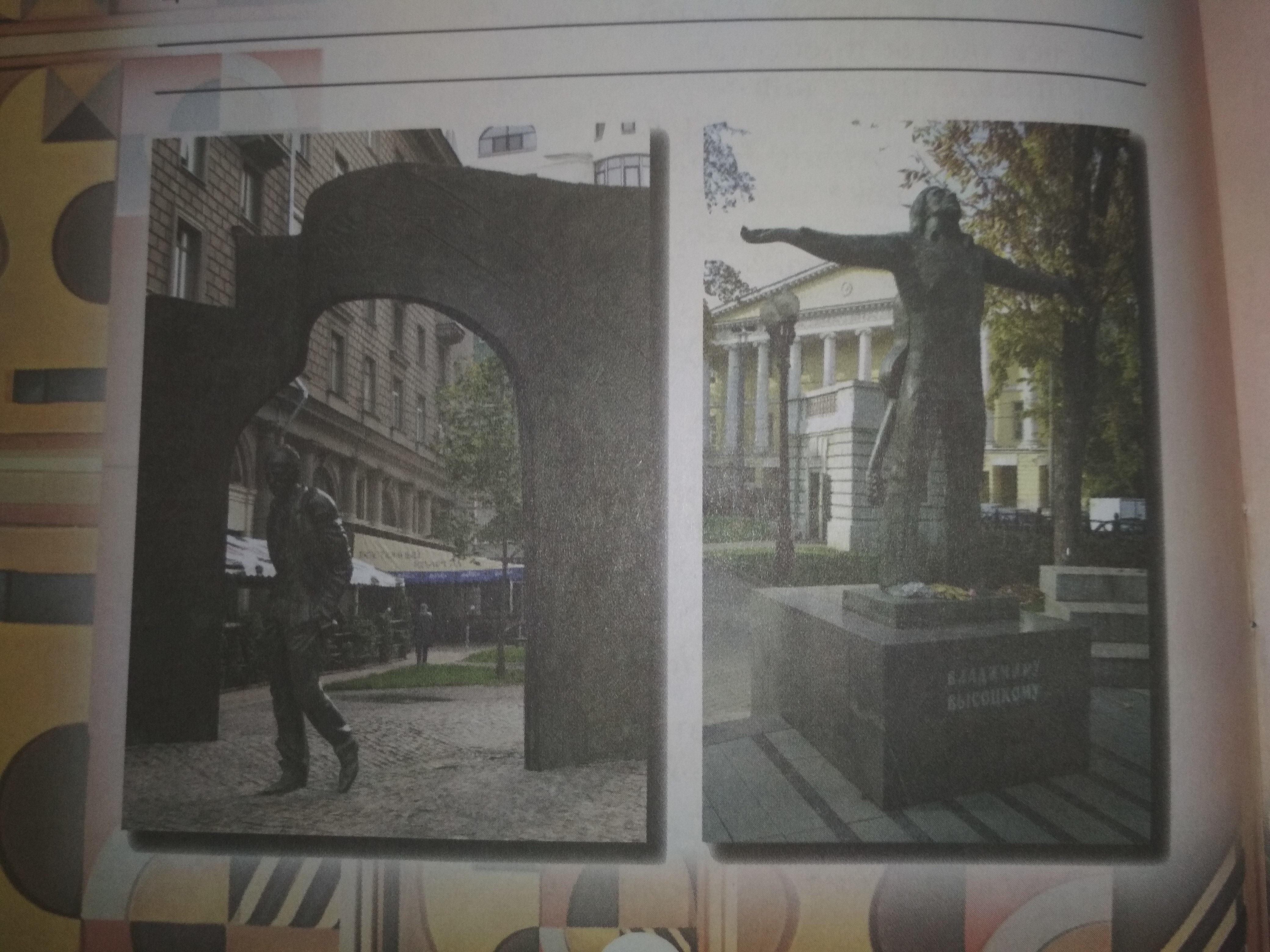 2) Каким бардам и где в Москве поставлены эти памятники? (картинка ниже). Обьясни почему именно там