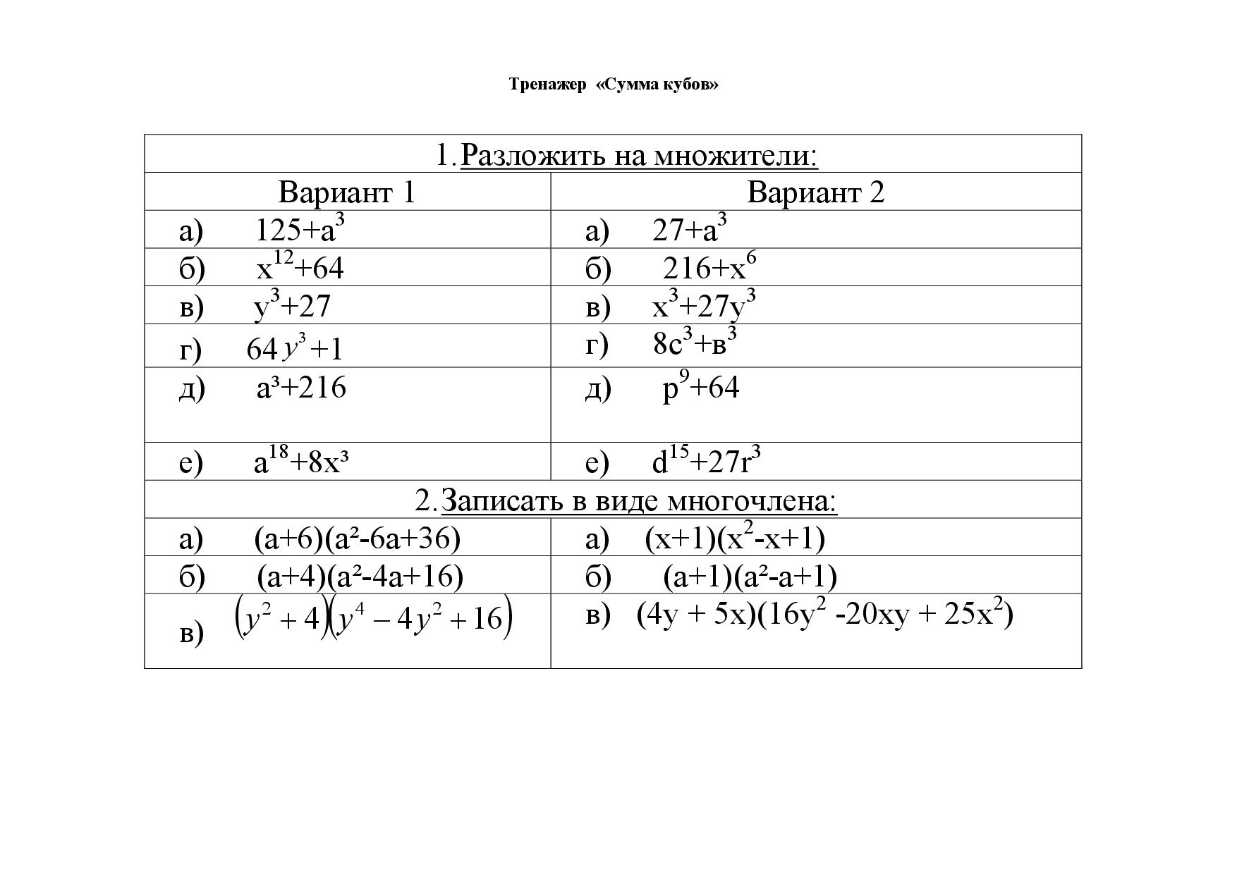 а)27+а^3=3^3+а^3=(3+а)(3^2-3а+а^2)=(3+а)(9-3а+а^2)