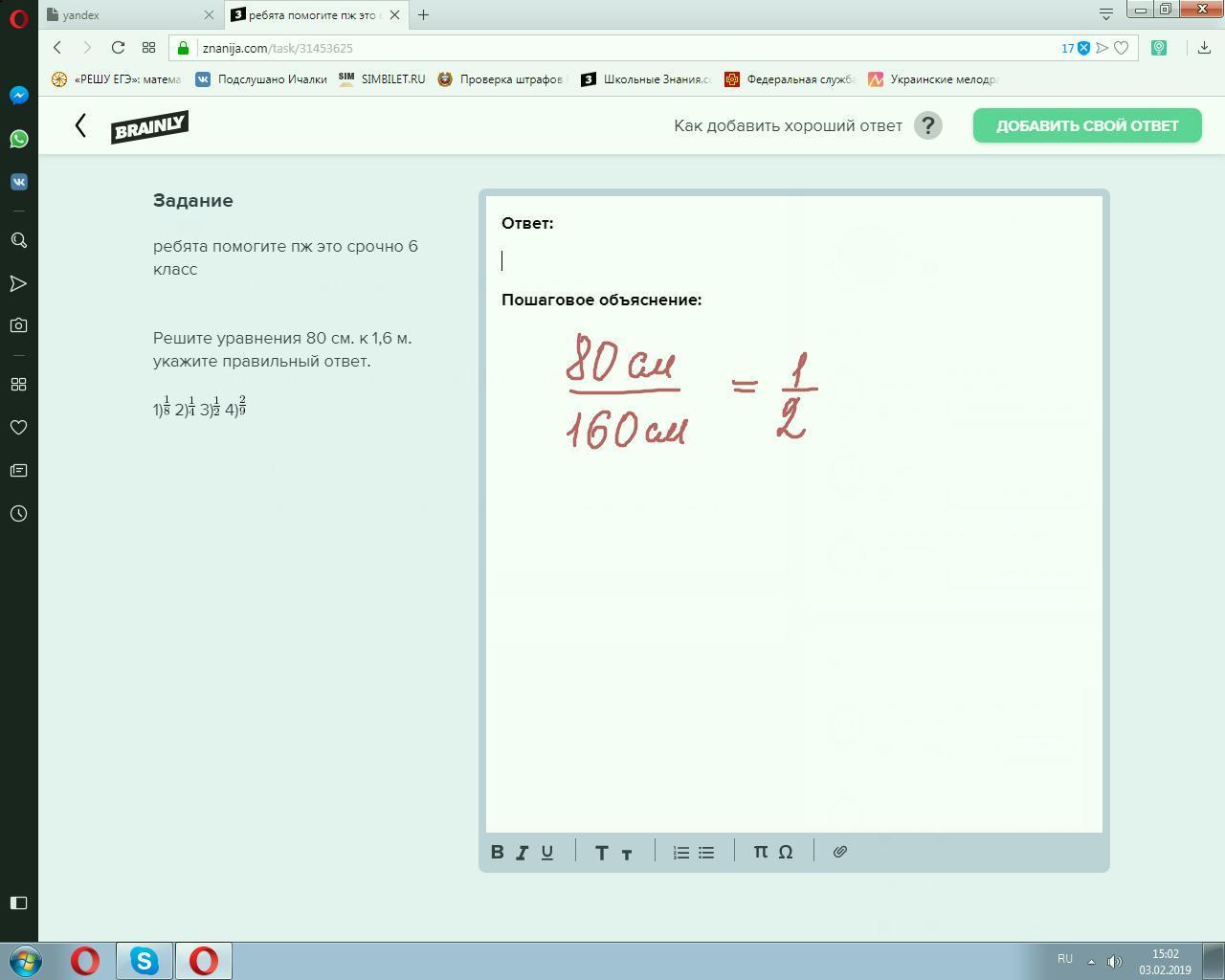 Решите уравнения 80 см. к 1,6 м. укажите правильный ответ.