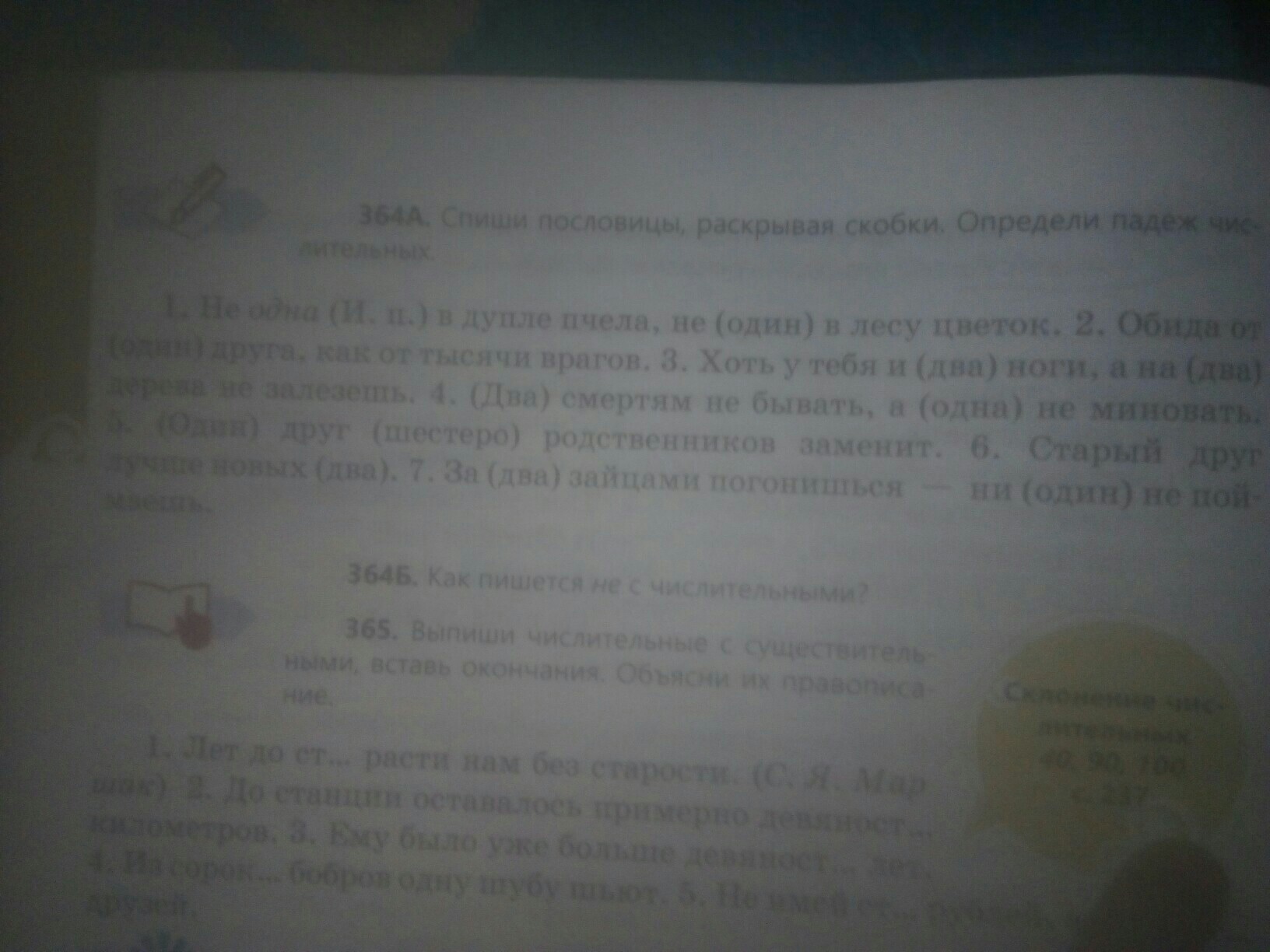 1. И п 2. Р п 3. в п 4. Т в 5. И п и В п 6. Р п 7. Т п и Р п