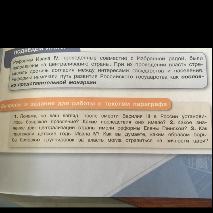 3. Бояре не смотрели за Иваном 4. Забывая про него, они даже иногда не давали ему еды. Бояре очень плохо относились к Ивану 4. В будущем из-за этого Иван 4 создаст Опричинину и будет не любить бояр.