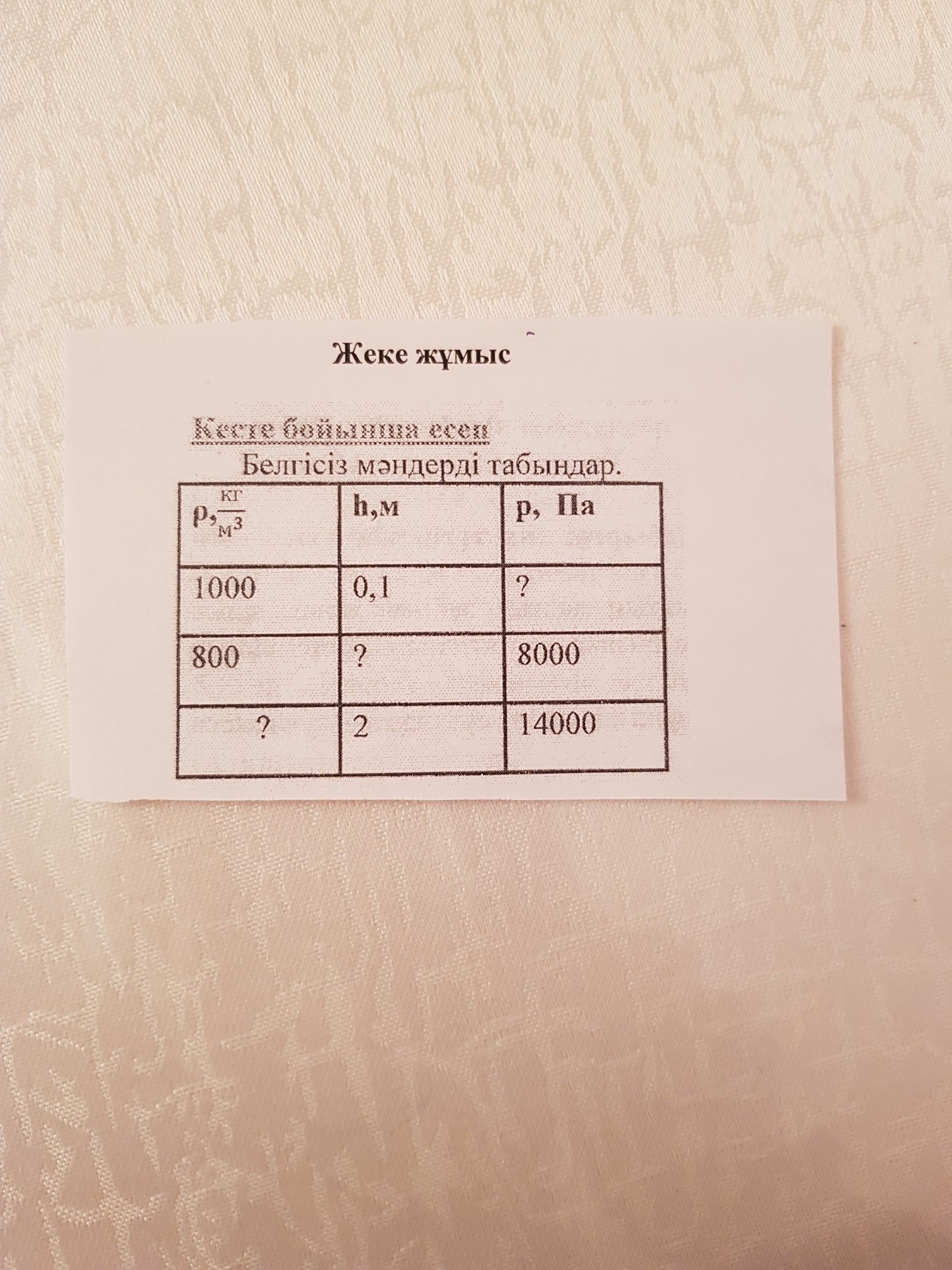 2) 800кг/м3×h×10Н/кг=8000Па,