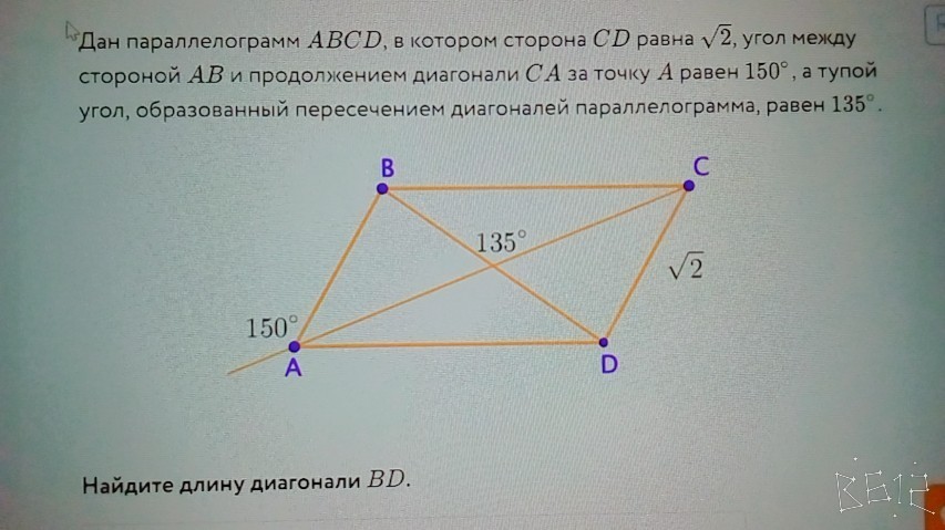 BO=(BA*sin30)/sin45=(√2*1/2)/(√2/2)=1