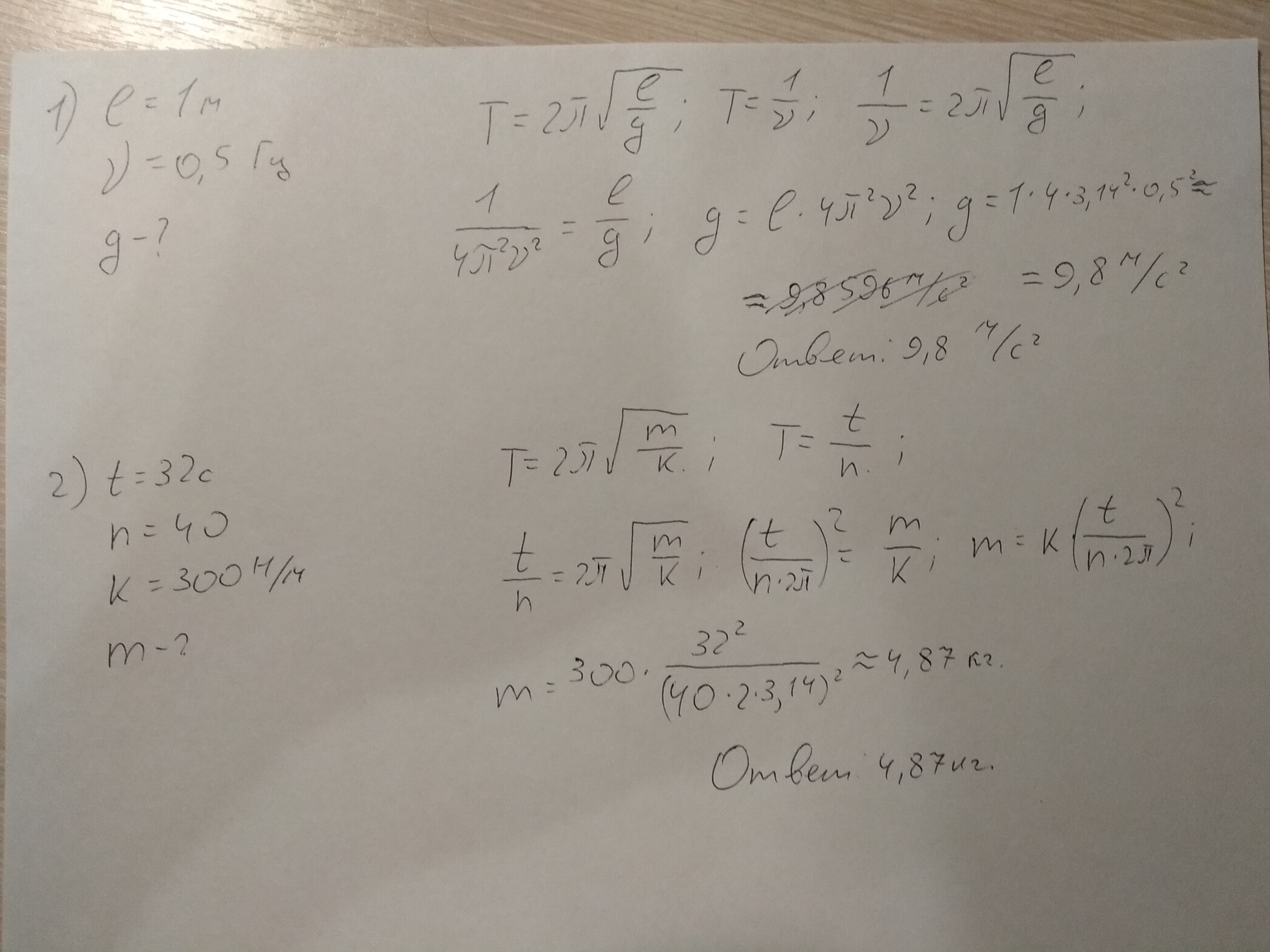 2) формула для периода пружинного маятника