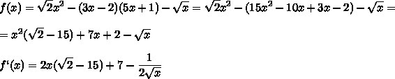 3)f(x)=корень2x^2-(3x-2)(5x+1)- кореньx