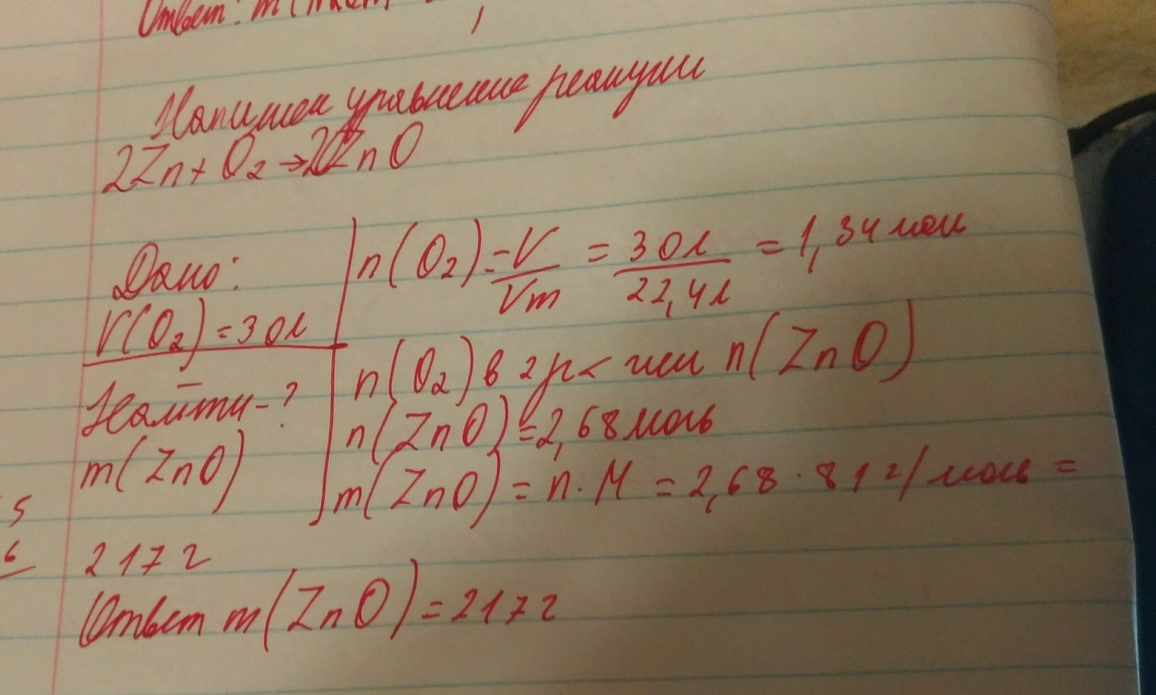 Определите массу оксида образовавшегося над цинковой пластине в результате продолжительного взаимодействия в воздухом объемом 30 л (н. у)