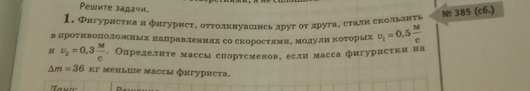 v1=0.5 м/с v2=0.3 м/с Δm=36 кг m=? mф=?