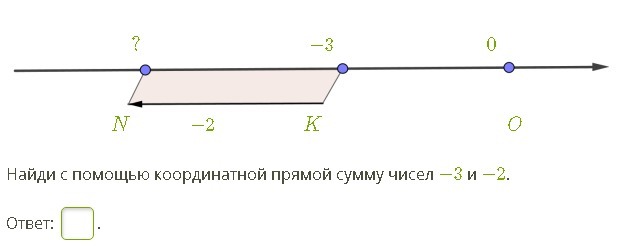 По координатной прямой от числа -3 нужно переместиться на 2 единичных отрезка влево (так как прибавляем отрицательное число). Попадаем в точку -3 + (-2) = -5.