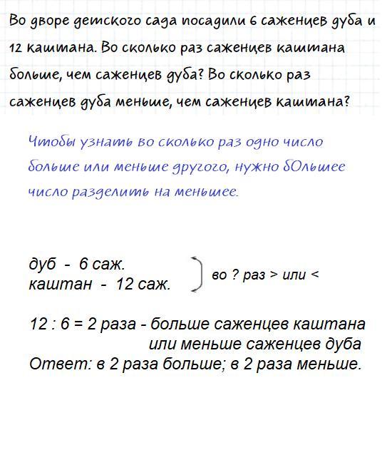 Во дворе детского сада посадили 6 саженцев дуба и каштана. Во сколько раз саженцев каштана больше чем саженцев дуба? Во сколько раз саженцев меньше чем саженцев каштана