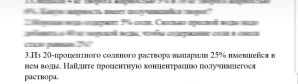 Итого: осталось 0,6х воды, находим концентрацию: 0,2х соли/(0,2х соли+ 0,6х воды) =0,25