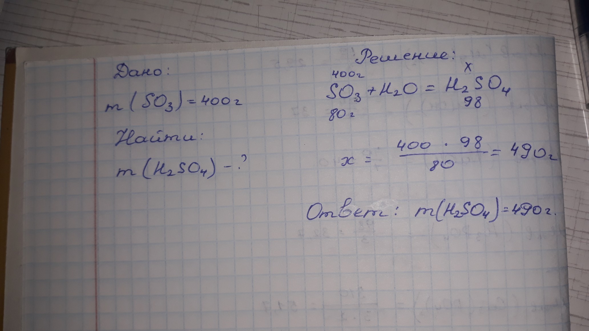 сколько граммов серной кислоты образуется при полном взаимодействии 400 г SO3 с избытком воды