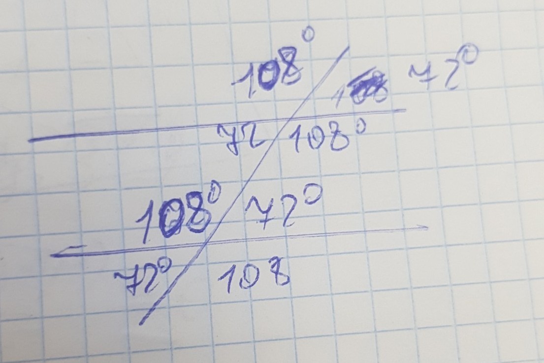при пересечении параллельных прямых третьей прямой один из углов равен 72°. найти остальные углы.