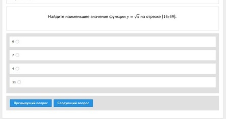 y=Vx возрастающая ф-ция, наименьшее при х=16 у=V16=4 (V-jобозначение корня)