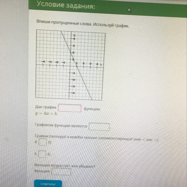 Дан график линейной функции у=kx+b. Графиком функции является прямая