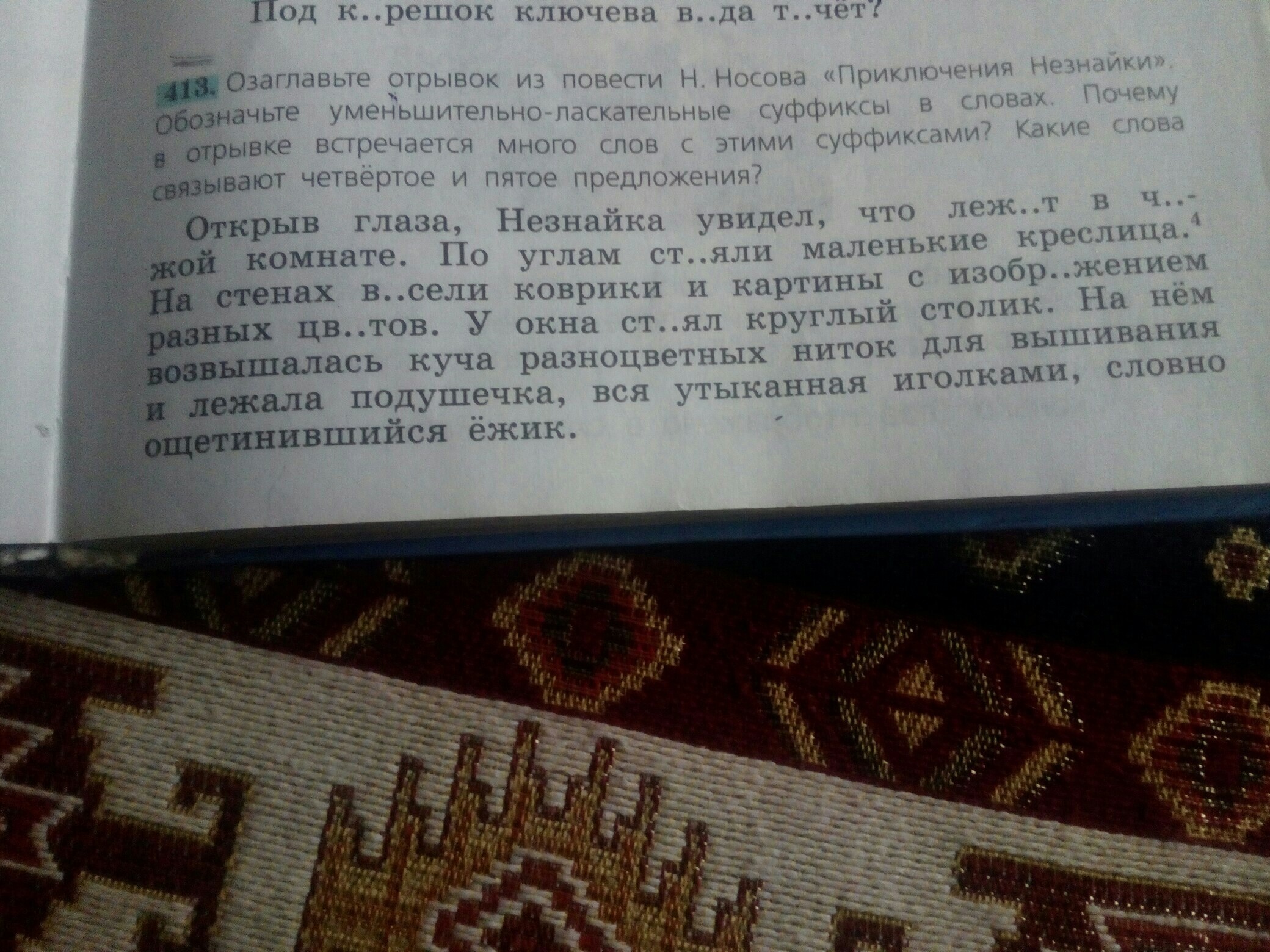 Озаглавьте отрывок из повести Носова Приключения Незнайки обозначьте уменьшительно-ласкательные суффиксы в словах Почему в отрывке встречается много слов с этими суффиксами Какие слова связывают четвёртое и пятое предложение