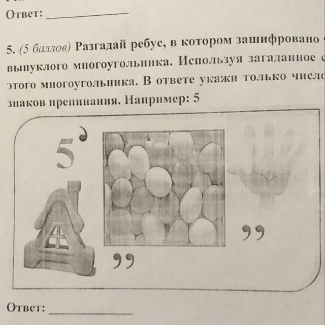 Разгадай ребус, в котором зашифровано число n - количество сторон выпуклого многоугольника. Используя загаданное слово, вычисли сумму углов этого многоугольника. В ответе укажи только число, без пробелов и каких-либо знаков препинания. Например 5