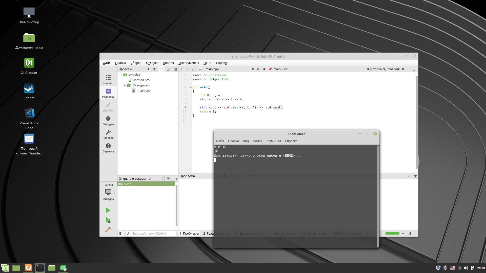 Здравствуйте! Помогите, пожалуйста, написать программу нахождения большего из трех чисел, переменнае назвать в соответствии с инициалами К L A