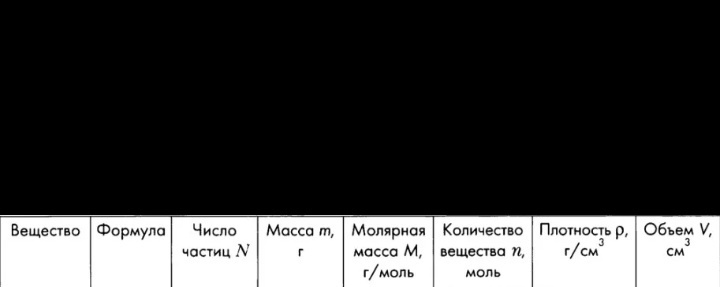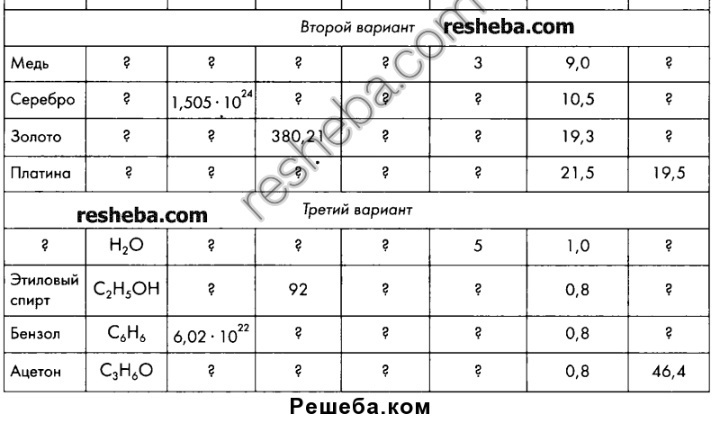 Медь; Cu; 1,86*10^24 молекул; 190,5 г; 63,5 г/моль; 3 моль; 9,0 г/см3; 21,2 см3.