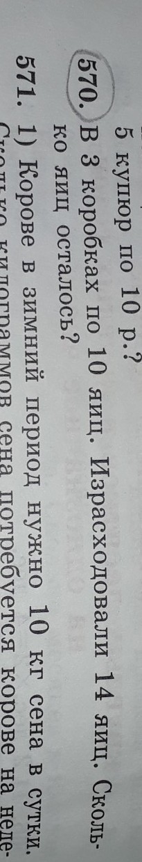 10*3=30 всего яиц было 30-14=16