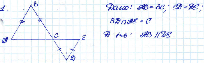 4) из п.3 делаем вывод, что ∠BAC=∠CED => AB║DE , тк ∠BAC и ∠CED - накрест лежащие.