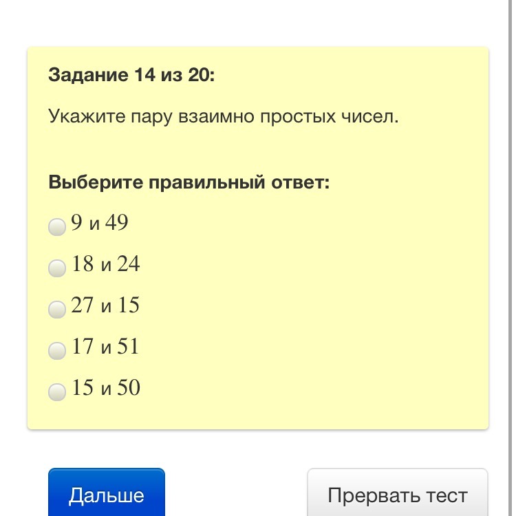 9 и 49, т.к делители 9 - это 3 и 3, а 49 - это 7 и 7. То есть нет таких чисел, на которые бы делились 9 и 49 одновременно