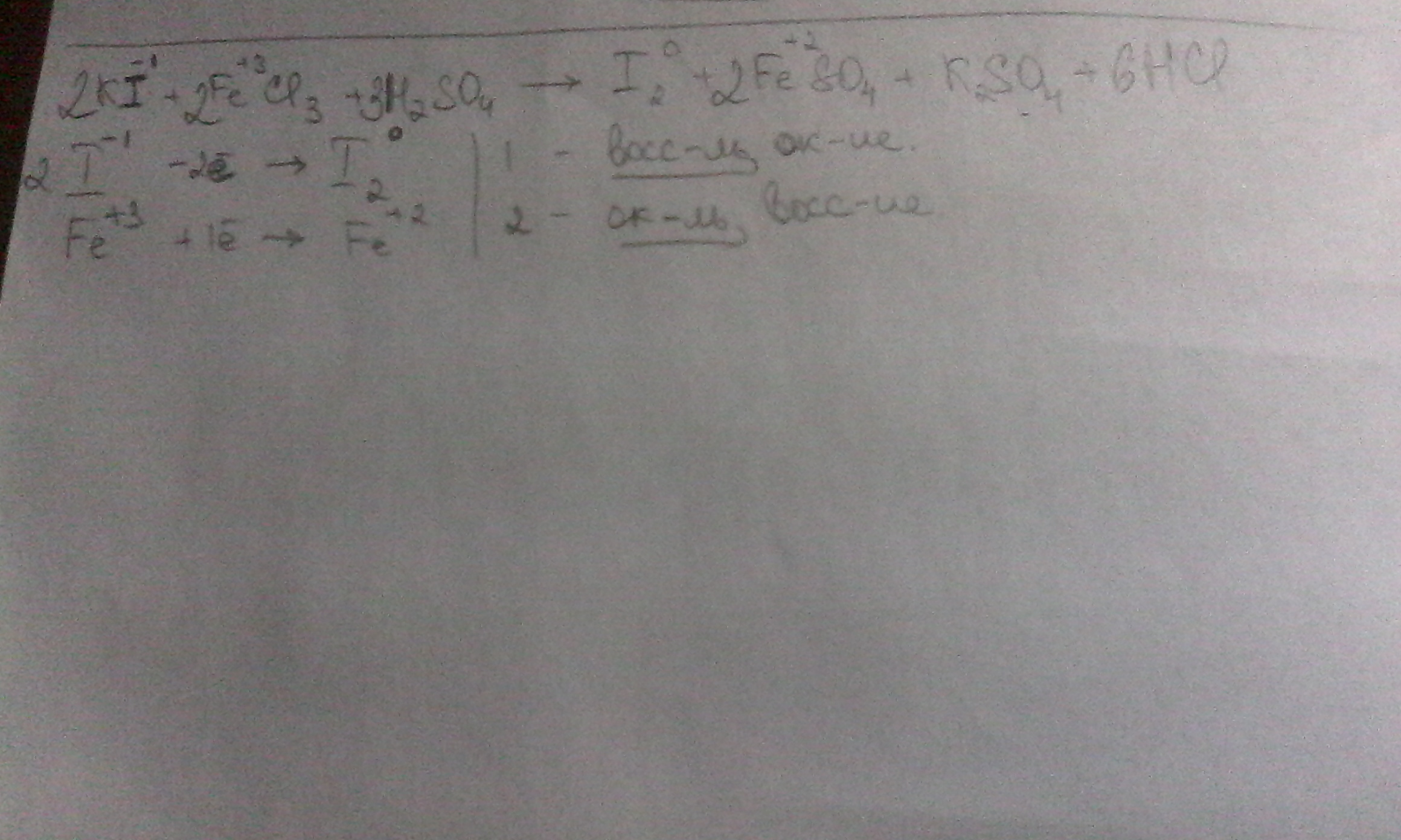 Расставьте коэффициенты методом электронного Kl+FeCl3+H2SO4=I2+FeCl2+SO2+KCl+H2O