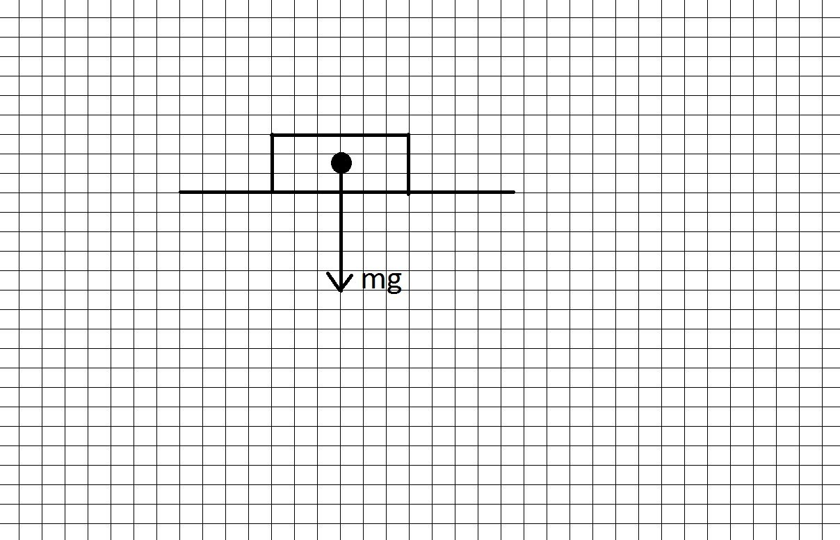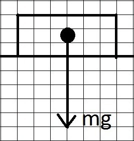 Горизонт. черта, на ней прямоуг., посередине его точка, от нее 6 клеток вниз стрелка, это F.