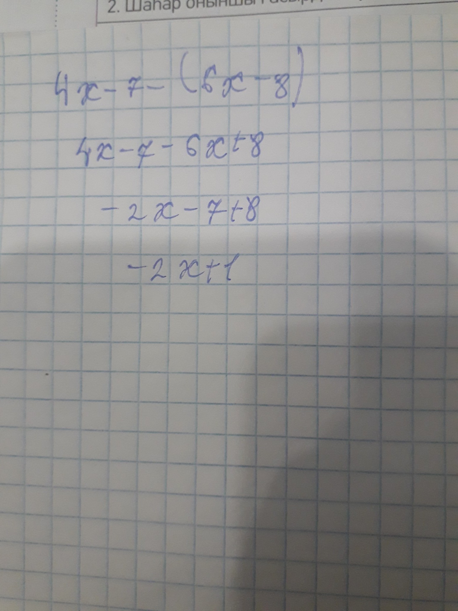 4х-7-(6х-8) = 4х-7-6х+8 = 1-2х.