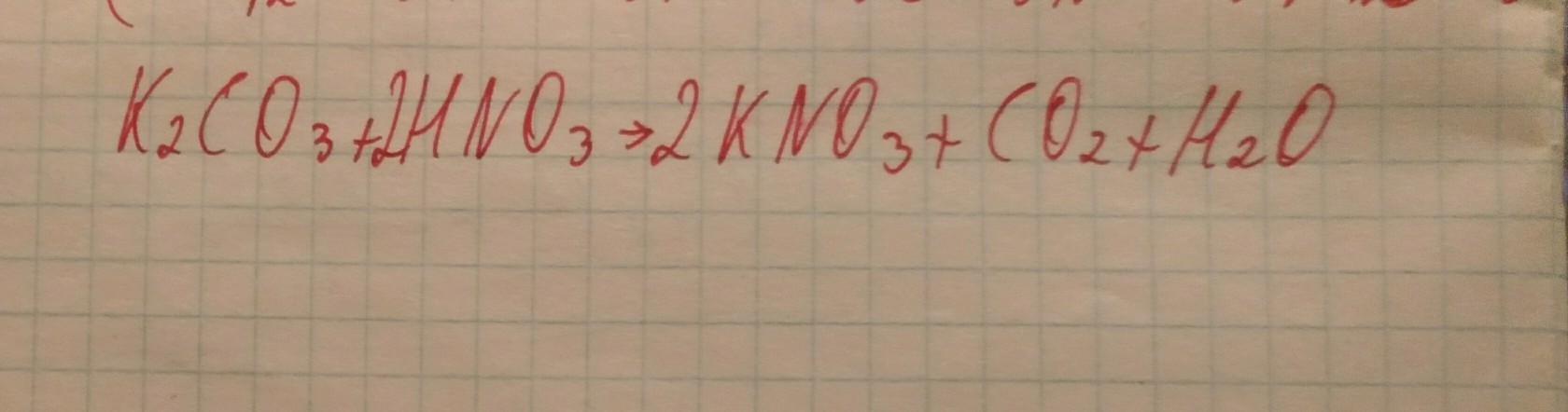 Напишите уравнение реакции взаимодействия азотной кислоты с карбонатом калия. Очень надеюсь на вашу помощь!