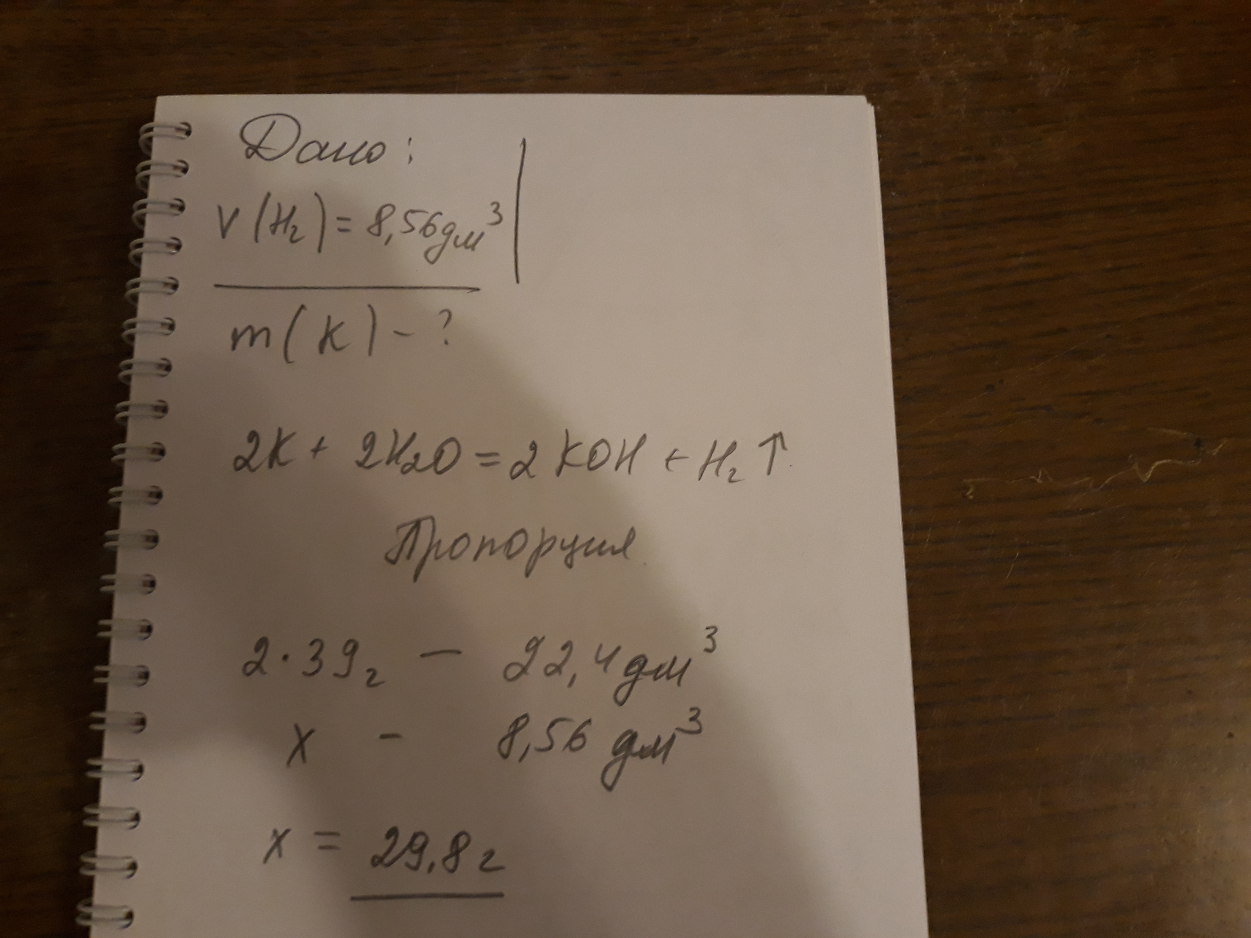 V (H₂) = 8,56 дм³.