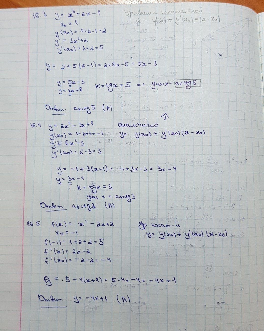 Также знать, что уравнение прямой у=кх+в, где к - это угловой коэффициент и является также тангенсом, в нашем случае касательной к графику функции.