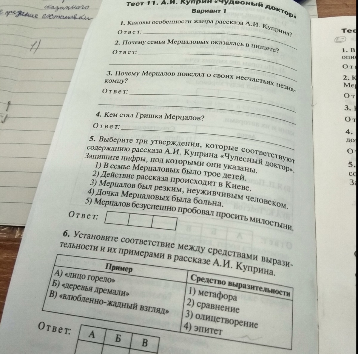 Тест по рассказу А И Куприна «Чудесный доктор»
