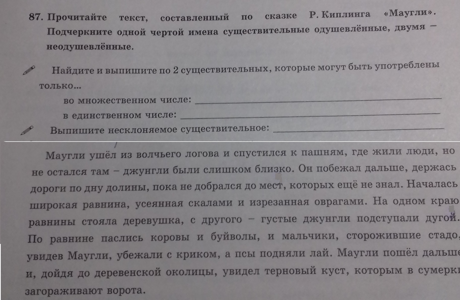 Прочитайте текс, составленный по сказке Р. Киплинга "Маугли". см. вопросы на рисунке.
