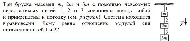 Три бруска массами m, 2m и 3m с помощью невесомых