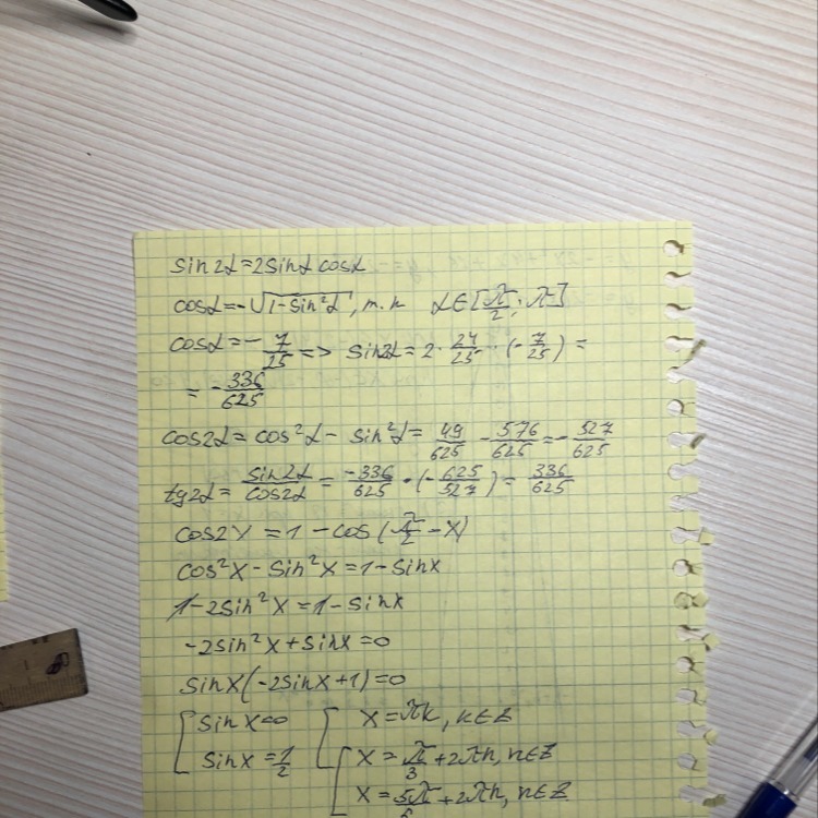 Найдите: sin2a, cos2a,tg2a если sina= 24/25 и пи/2 < a < пи