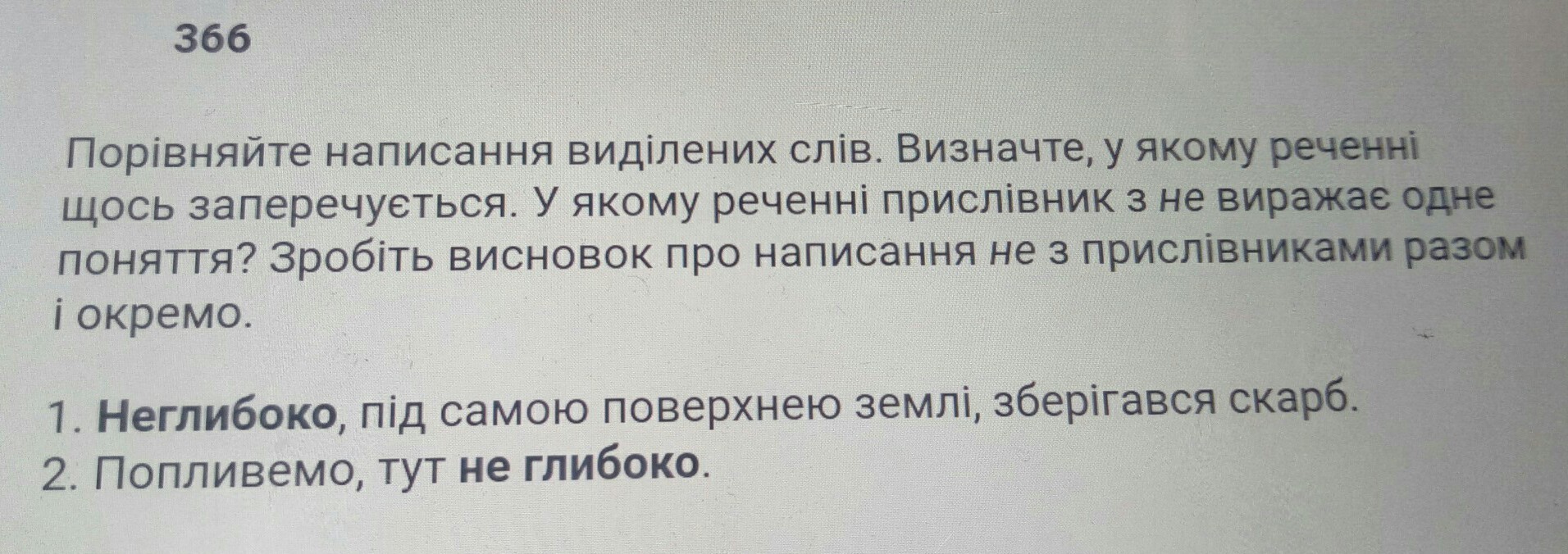У першому реченні прислівник з "не" виражає одне поняття,а в другому заперечує
