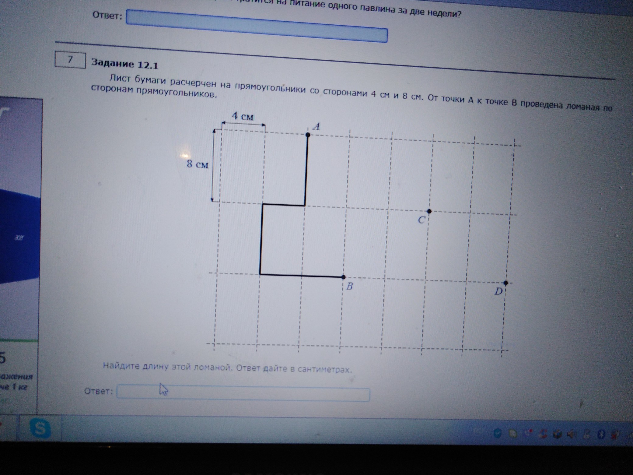 Длина ломаной : (2 × 8) + (3 × 4) = 16 + 12 = 28(см)
