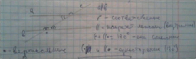 Ну ты понимаешь, что я отметил одну прямую как какую-то, ну в смысле ты назови её так как написано в условии ты походу перепутал буквы(у параллельных прямых нет общей точки)