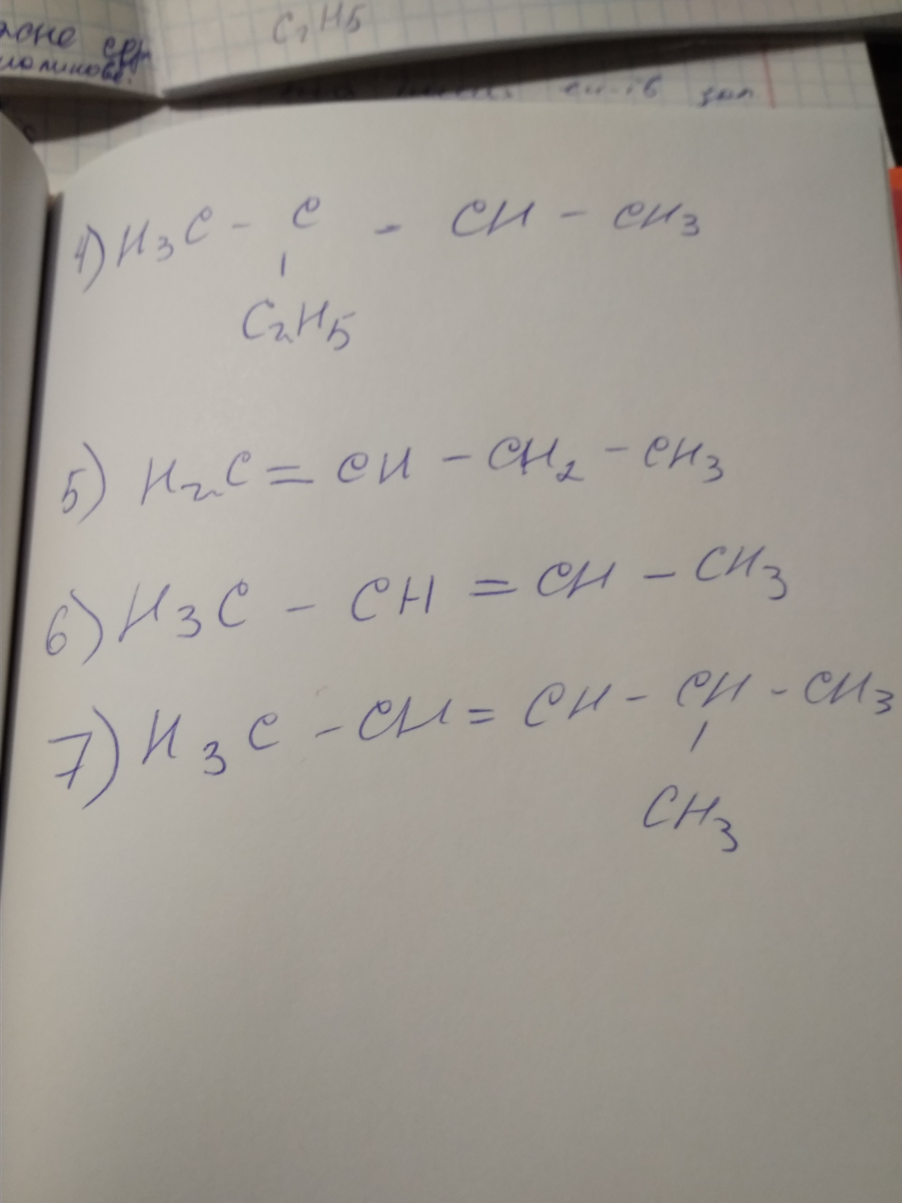 7) 2-метилпентен -3 - сумма номеров у атомов должна быть минимальной