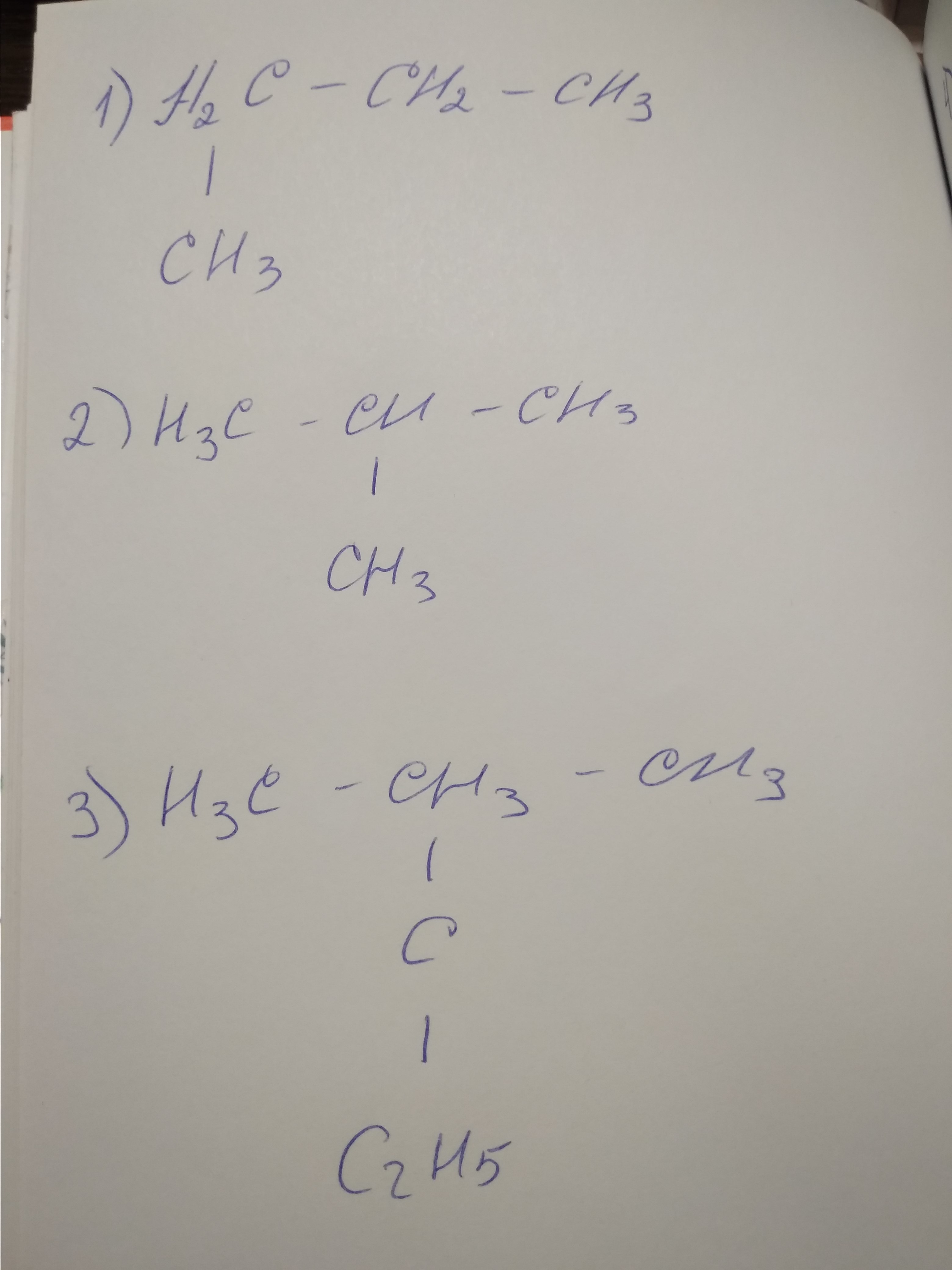 3) такого вещества нету, нужно к пустому карбону дописать H2, тогда получится 2-метилпентан;