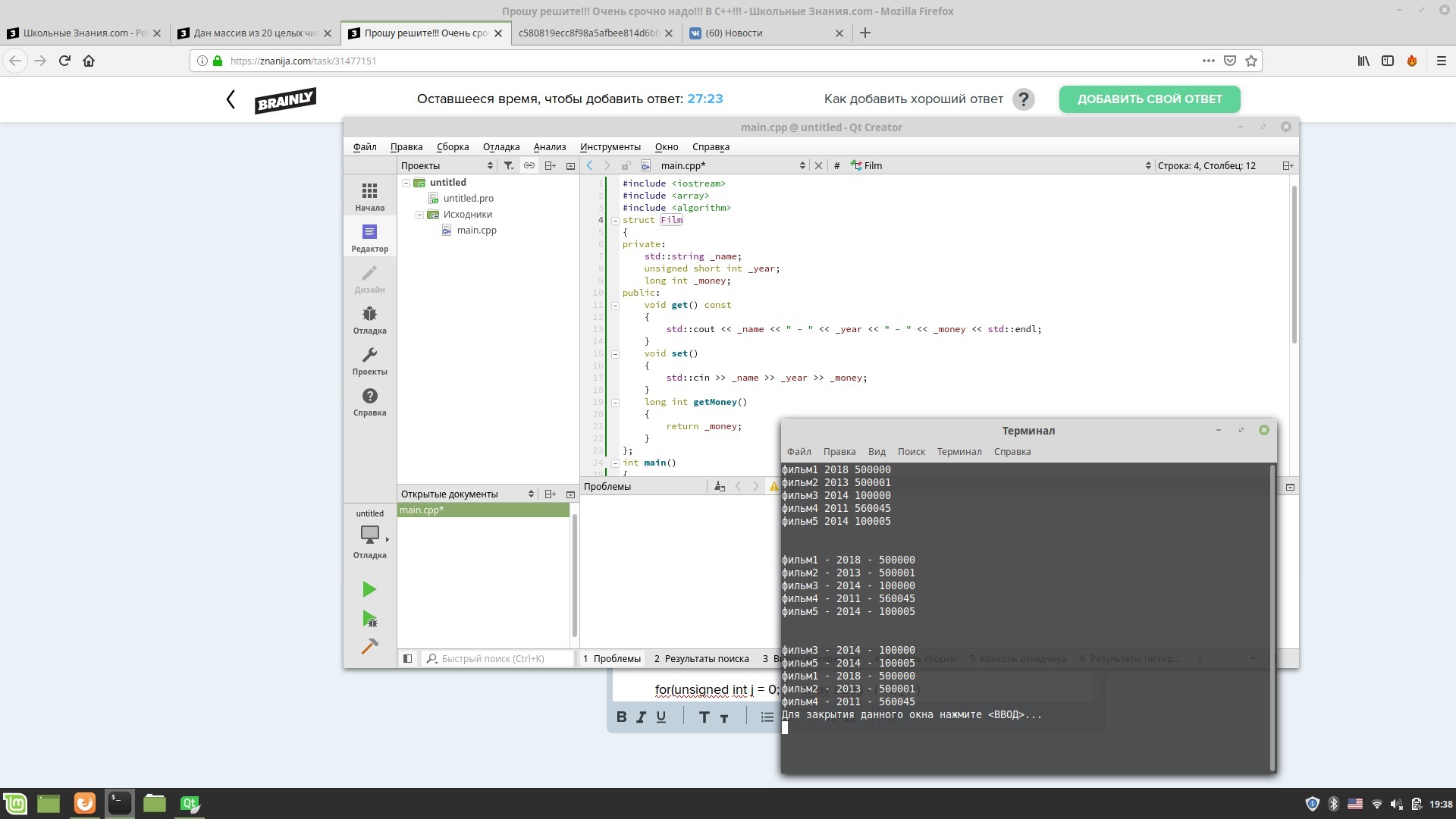 std::sort(arr.begin(), arr.end(), [](Film& var1, Film& var2)