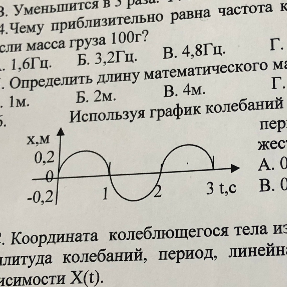 С Р О Ч Н О! Используя график колебаний пружинного маятника найдите амплитуду, период и частоту колебаний груза на пружине жесткость 40 Н/с. Какова масса груза?