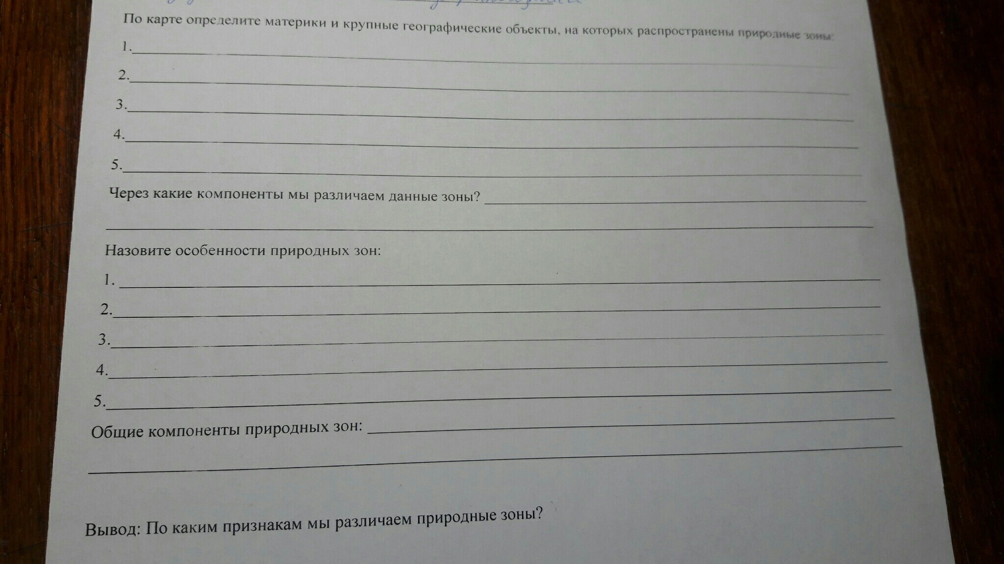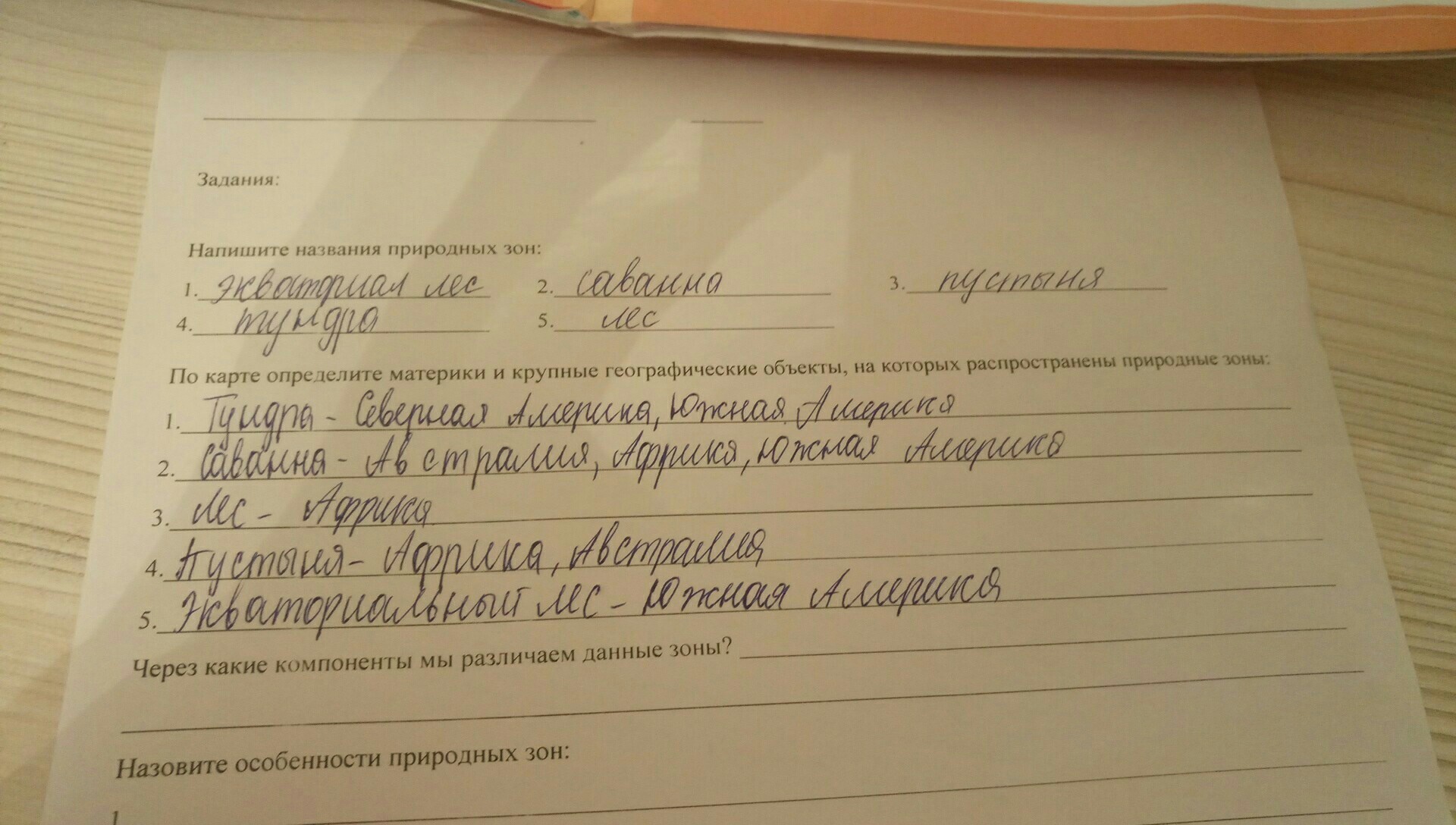 Назовите особенности природных зон