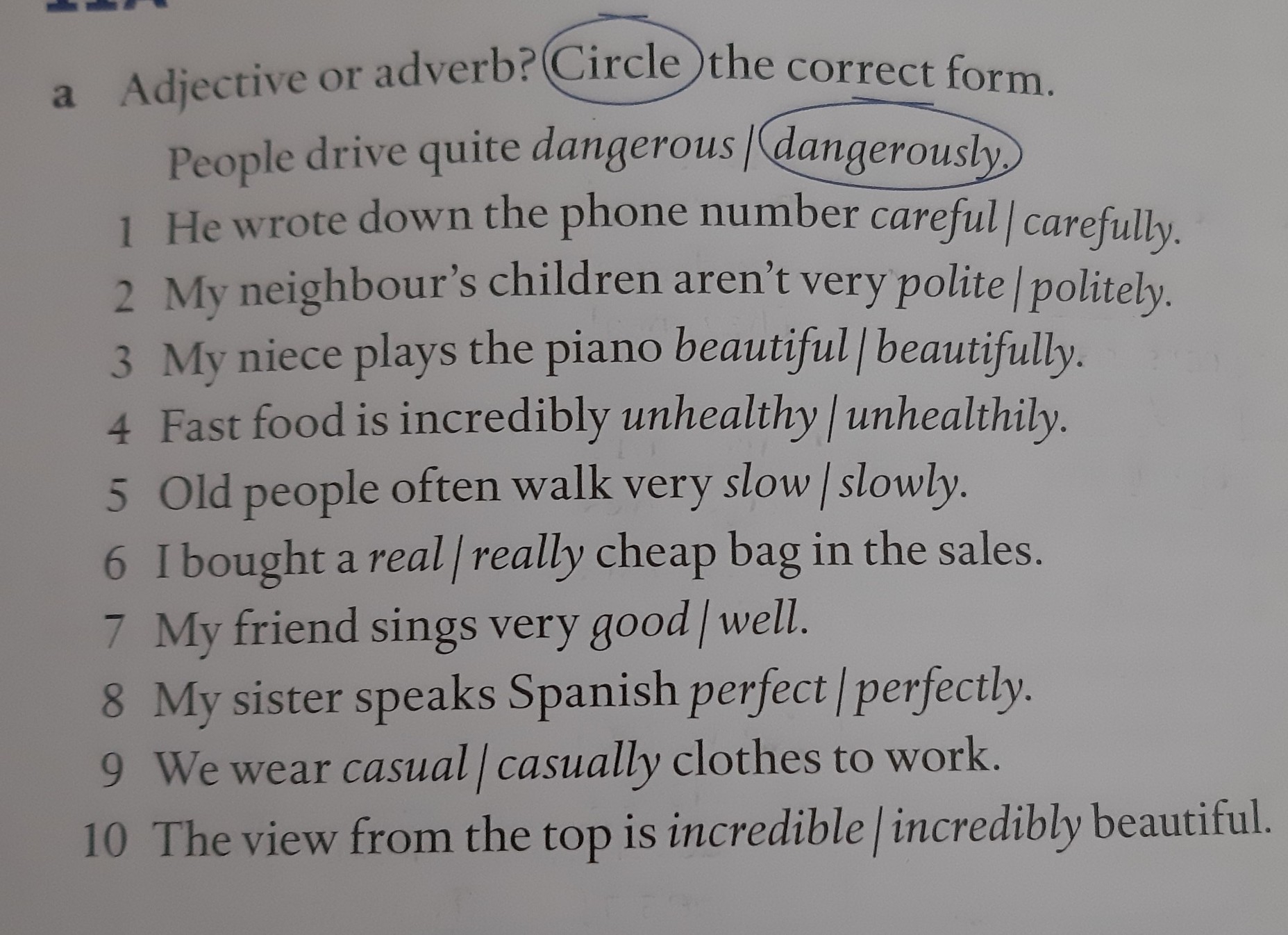 a Adjective or adverb? Circle the correct form.